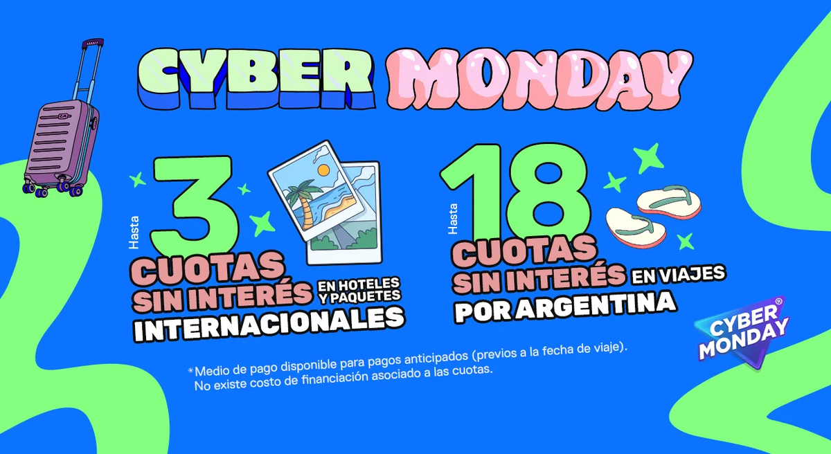 - Paquetes por Argentina con hasta $150.000 de descuento con el cupón CYBERPACKNAC.