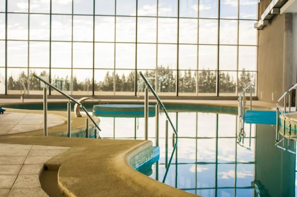 El área de las piscinas cubiertas, que cuenta con cuatro piletas de aguas termales. Todas tienen ingresos accesibles para personas con discapacidad. Además, tienen asientos, jacuzzi, chorros de agua como cuello de cisne, hidrojet, y más opciones de relajación.
