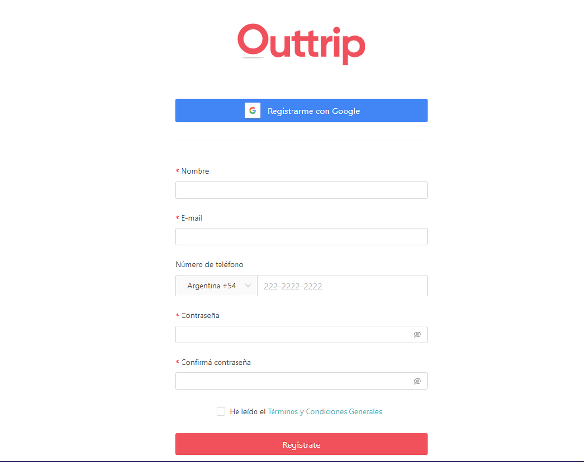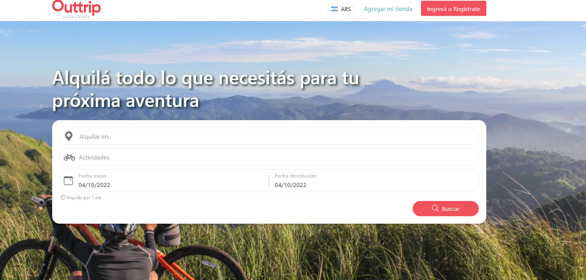 - Ingresar a la página web oficial (outtrip.com.ar) y cliquear el botón "Iniciar sesión o Registrarse".