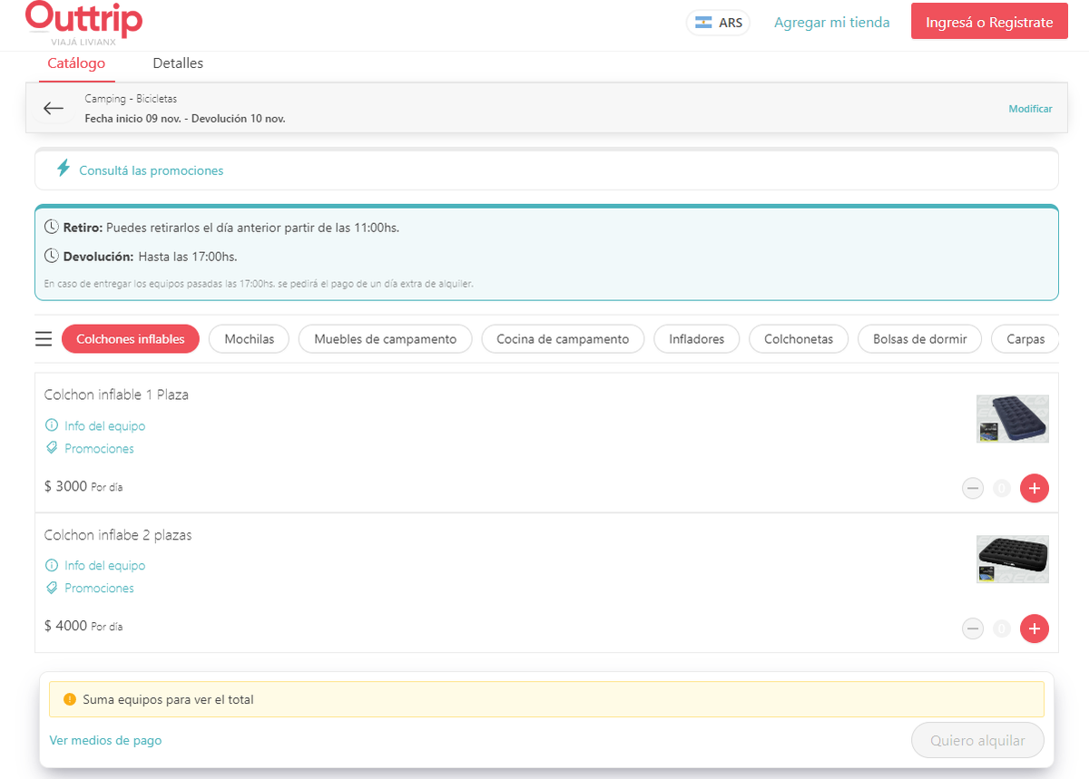 Se podrán ver todas las opciones hasta seleccionar la que a cada viajero le convenga. Una vez elegida, se deberá seleccionar el botón "Quiero alquilar". Allí deberán completarse los datos y proceder al pago.