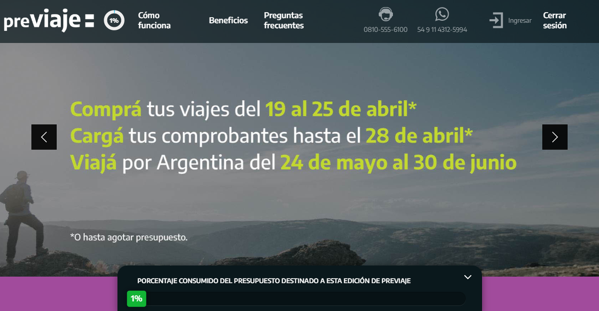 En la página oficial se incorporó un medidor que indica el porcentaje consumido del presupuesto destinado al Previaje -hasta el momento es del 1%-.
