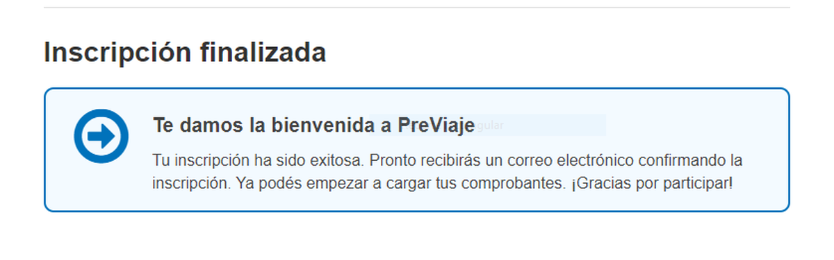 - El próximo paso es inscribirse a Previaje, completando un formulario con datos personales, datos de contacto y de residencia y luego seleccionar "Confirmar Inscripción".