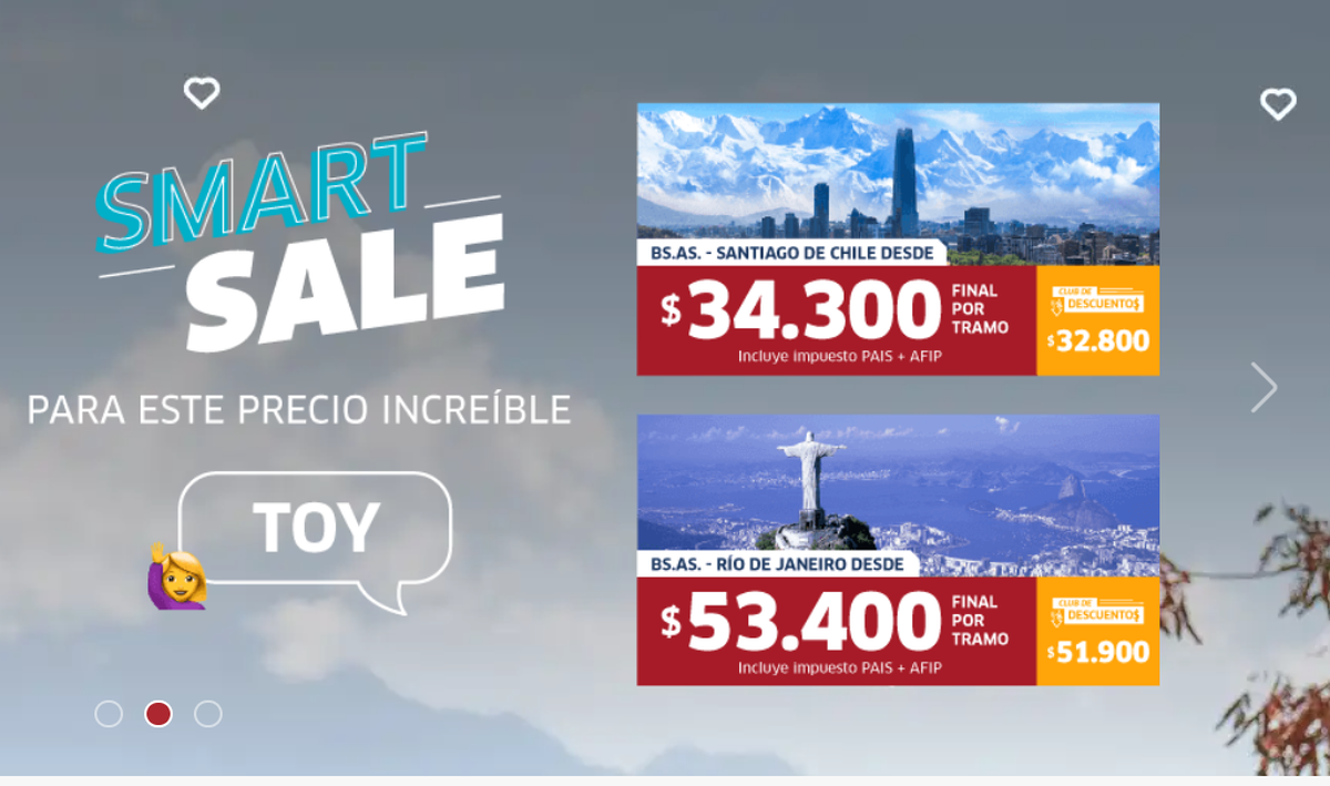 Además, lanzó descuentos en pasajes nacionales e internacionales. Entre Buenos Aires y:
