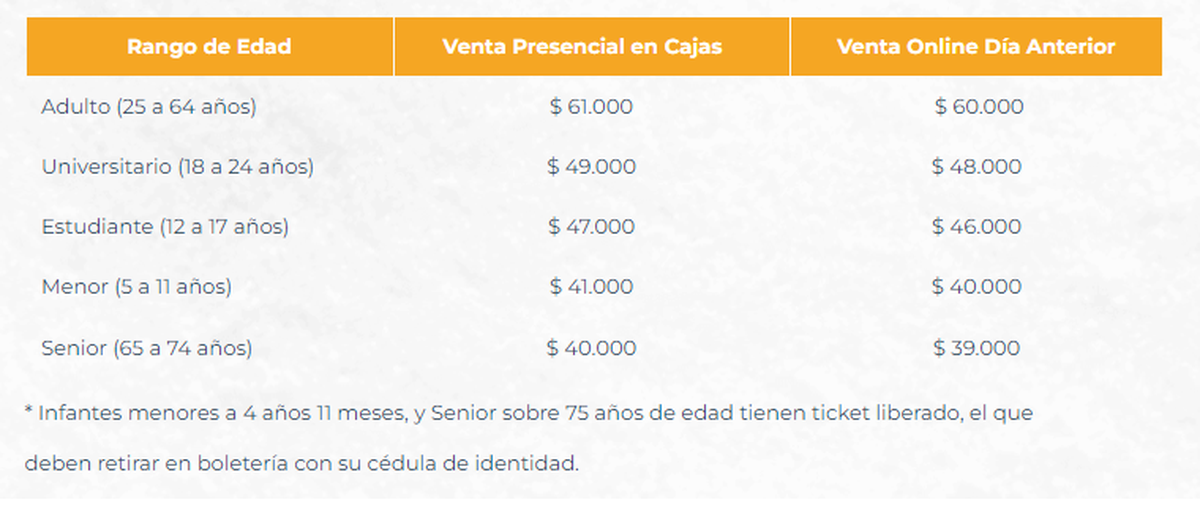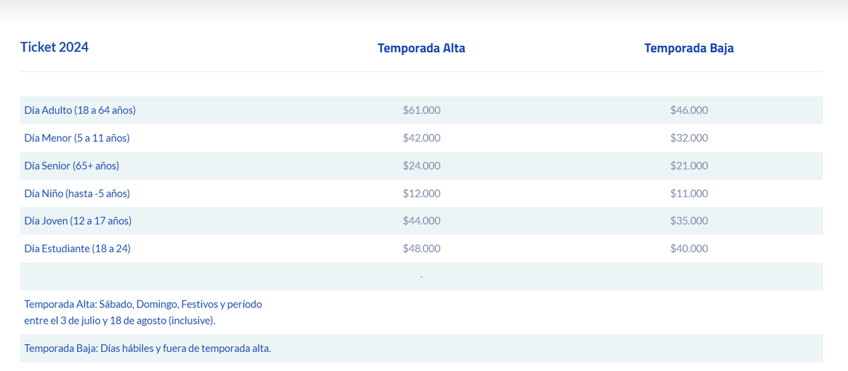 Por ejemplo, para adultos (25 a 64 años) los pases por venta online rondan los $60.000 por día, casi la mitad que el pase diario del Cerro Catedral ($115.000).