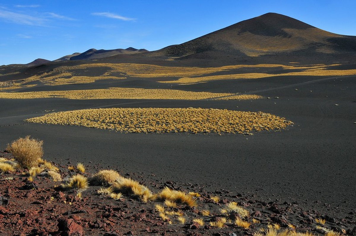 La lava fragmentada es lo que tiñó el color de los pastizales.