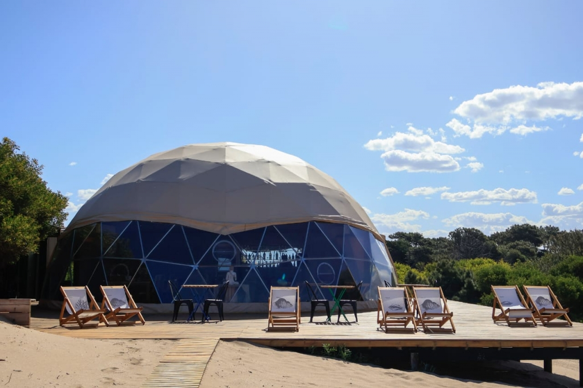 Entre Mar de las Pampas y Villa Gesell, se encuentra el primer glamping de lujo en la playa bonaerense. Se trata de Domos Park, ubicado más precisamente en Colonia Marina.