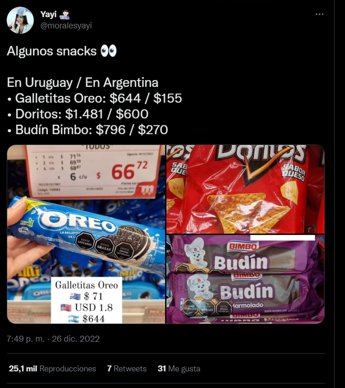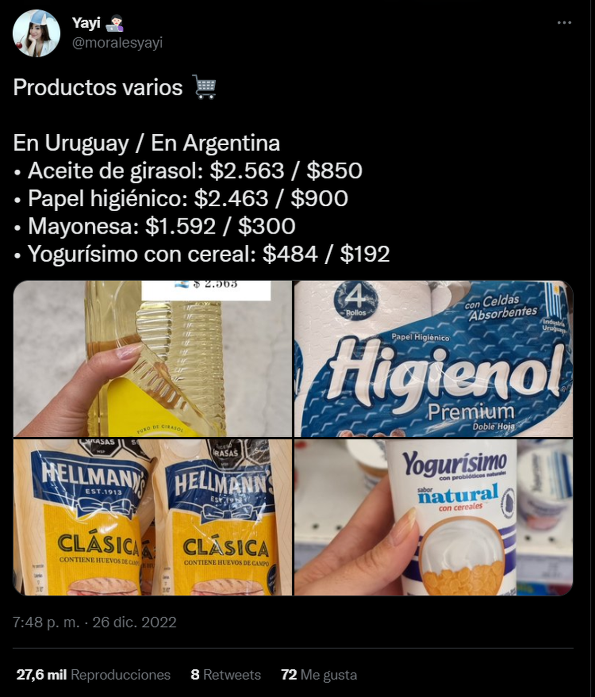 En Uruguay los precios tienen una diferencia de 300% comparado con los precios de la Argentina. La columnista en CNN, Valentina Morales, especializada en economía realizó una comparación de precios entre ambos países a través de su cuenta de Twitter, dando a conocer cuánto cuestan algunos productos en Uruguay.