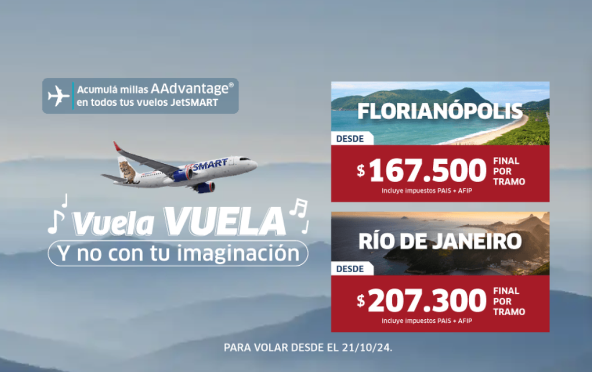 Mientras que la low cost Flybondi comenzó a volar a Brasil desde Aeroparque y JetSmart lanzó pasajes a precios promocionales para viajar desde hoy (21/10). Por ejemplo: