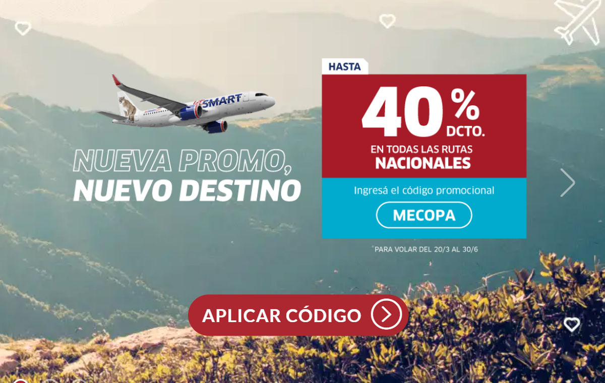 Cabe mencionar que los descuentos son para volar entre el 20 de marzo y el 30 de junio. Pudiendo aprovechar los fines de semana largos: del 24 al 26 de marzo, Semana Santa del 6 al 9 de abril, del 29 al 1 de mayo, del 25 al 28 de mayo y del 17 al 20 de junio.