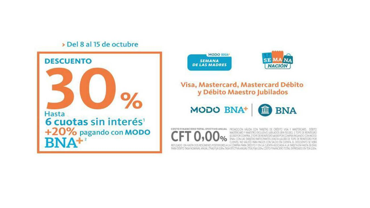 Mediante un beneficio que engloba a los poseedores de las tarjetas de crédito Visa y Mastercard, así como a los portadores de tarjetas Mastercard Débito y Maestro Jubilados proporcionadas por el Banco de la Nación Argentina (BNA), este "respiro financiero", ofrecerá la oportunidad de adquirir regalos en hasta seis cuotas fijas y sin interés, además de aplicar un descuento adicional del 20% en los comercios que acepten la modalidad MODO BNA+.