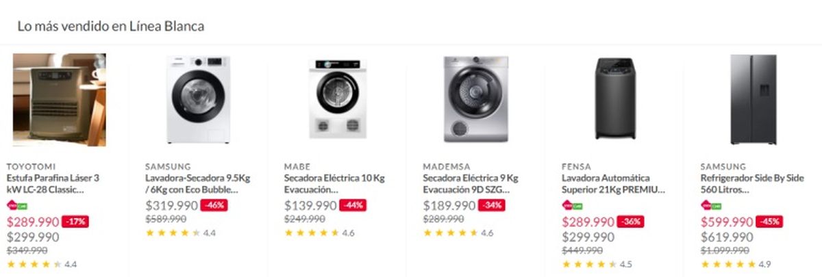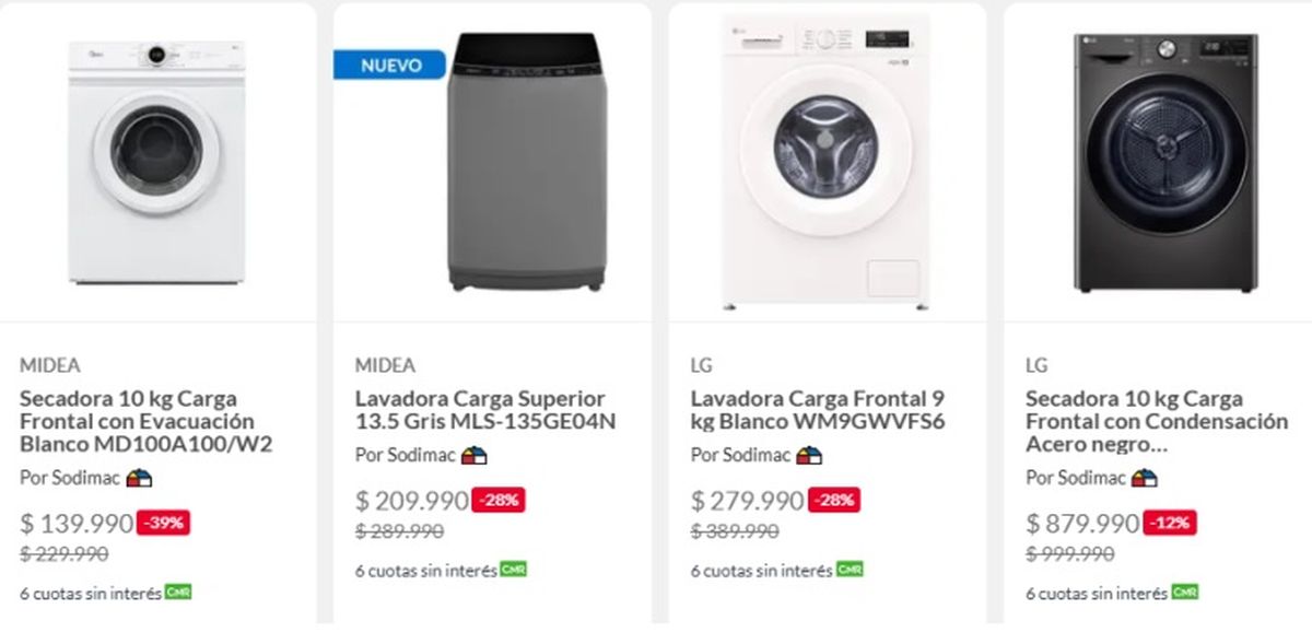 - Lavarropas desde $209.990 CLP (aprox. $278.000 ARS)