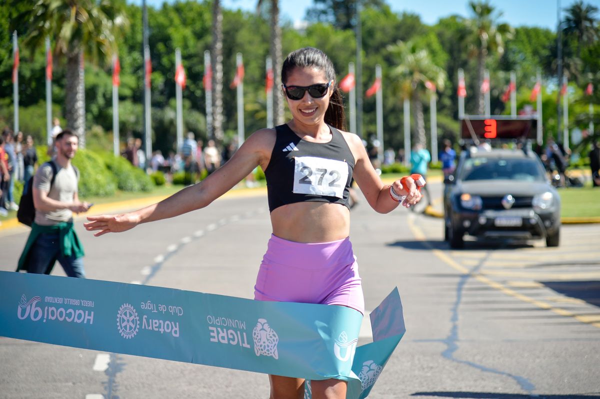 La ganadora, Caren Fernández: “Es la primera vez que estoy en esta carrera. Me gustó mucho el circuito, es un poquito duro, pero lindo. Siempre es agradable compartir con familia, con amigos y con la gente”.