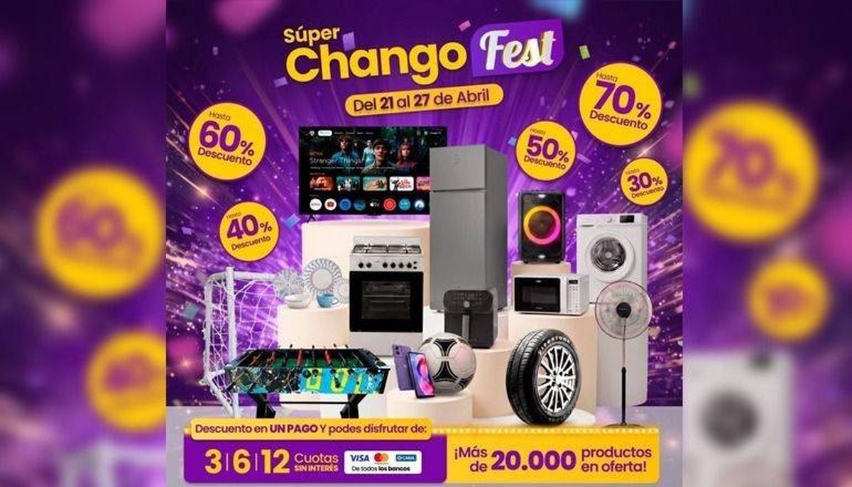 El “Super Chango Fest” es una acción comercial que se desarrollará del 21 al 27 de abril en todas las sucursales del país y en la plataforma online de la cadena. Durante esa semana, el supermercado ofrecerá más de 20.000 productos con descuentos que llegan hasta el 80%, además de planes de financiación en hasta 12 cuotas sin interés.